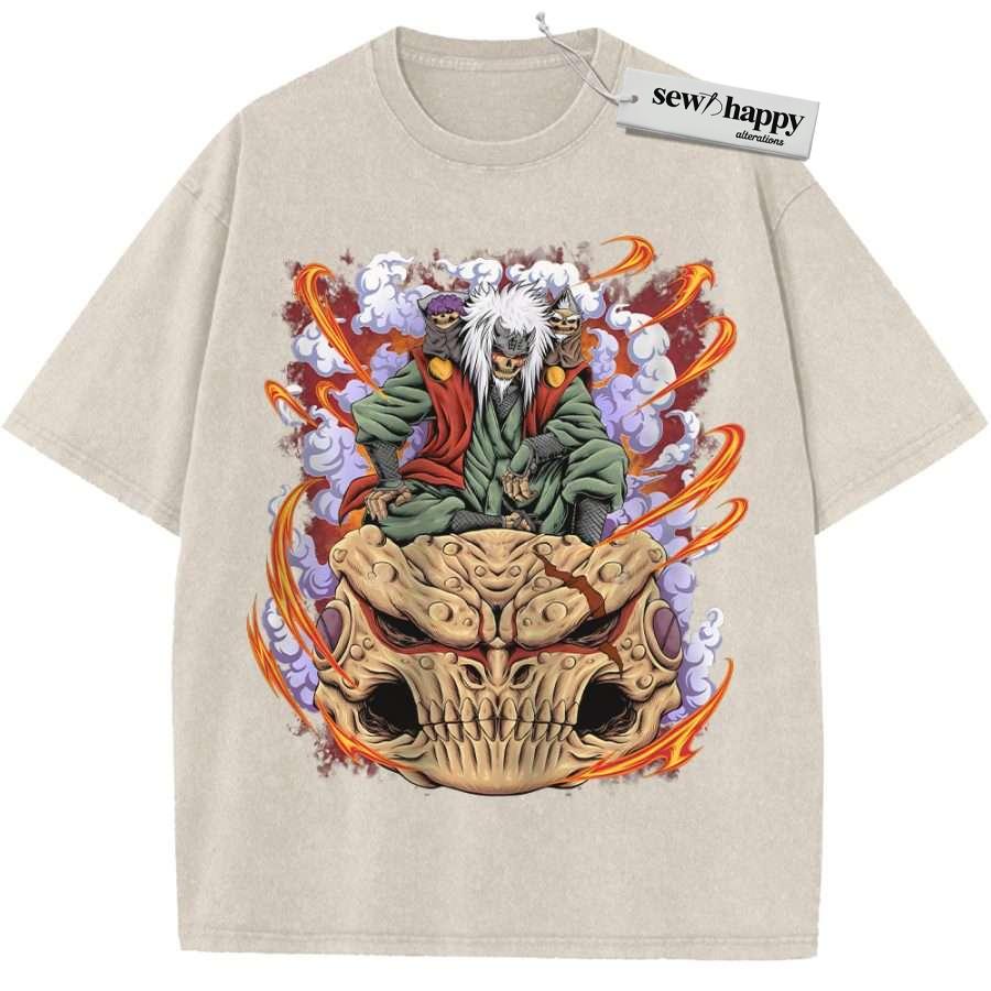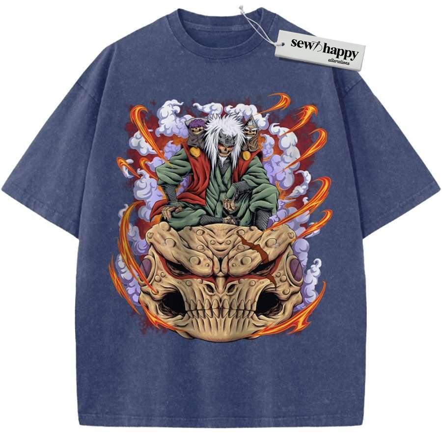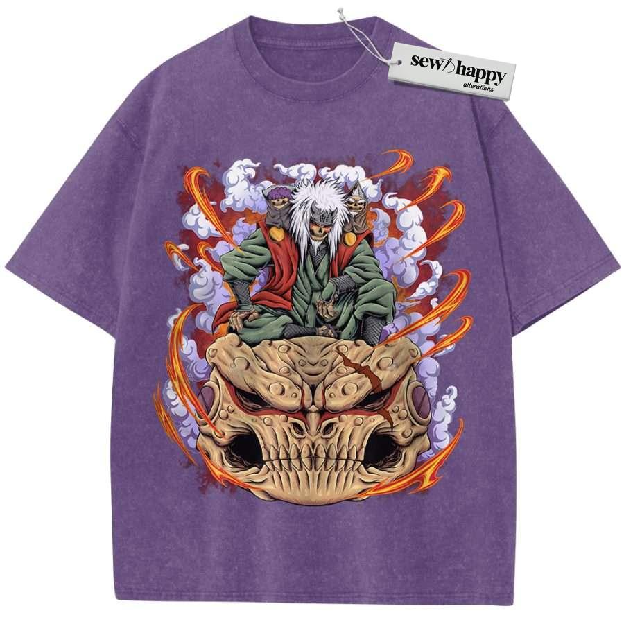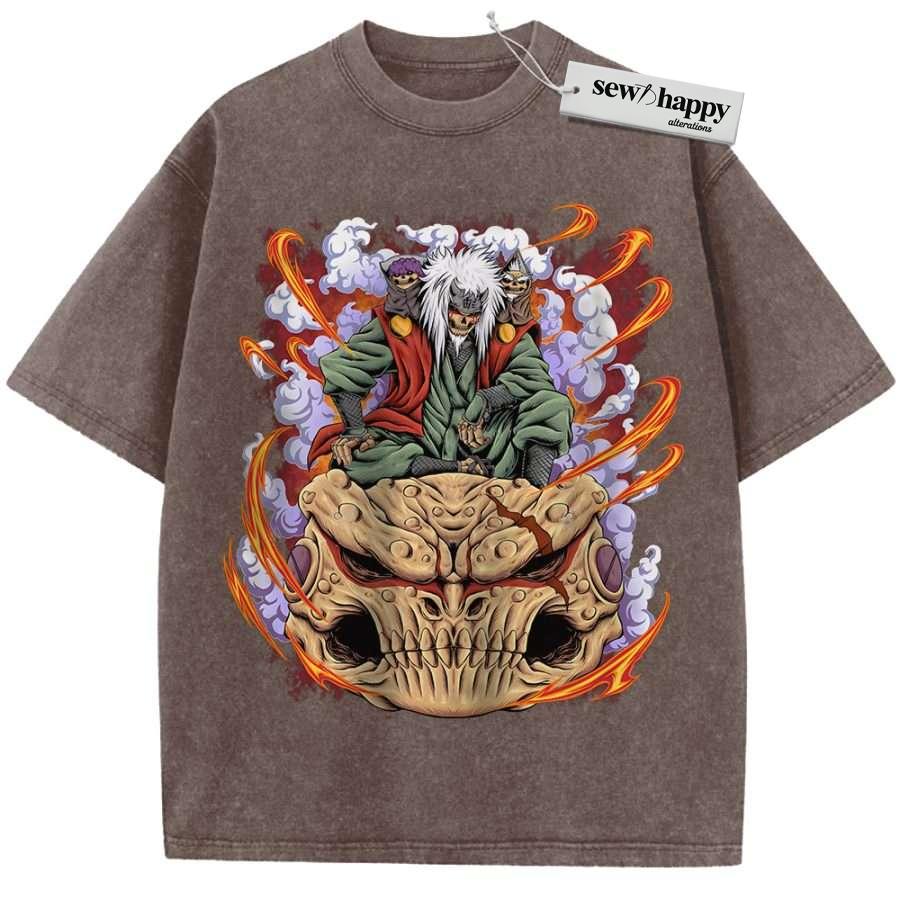 Wash Tee Skull Jiraiya Shirt, Naruto Shirt, Anime Shirt, Vintage T-Shirt