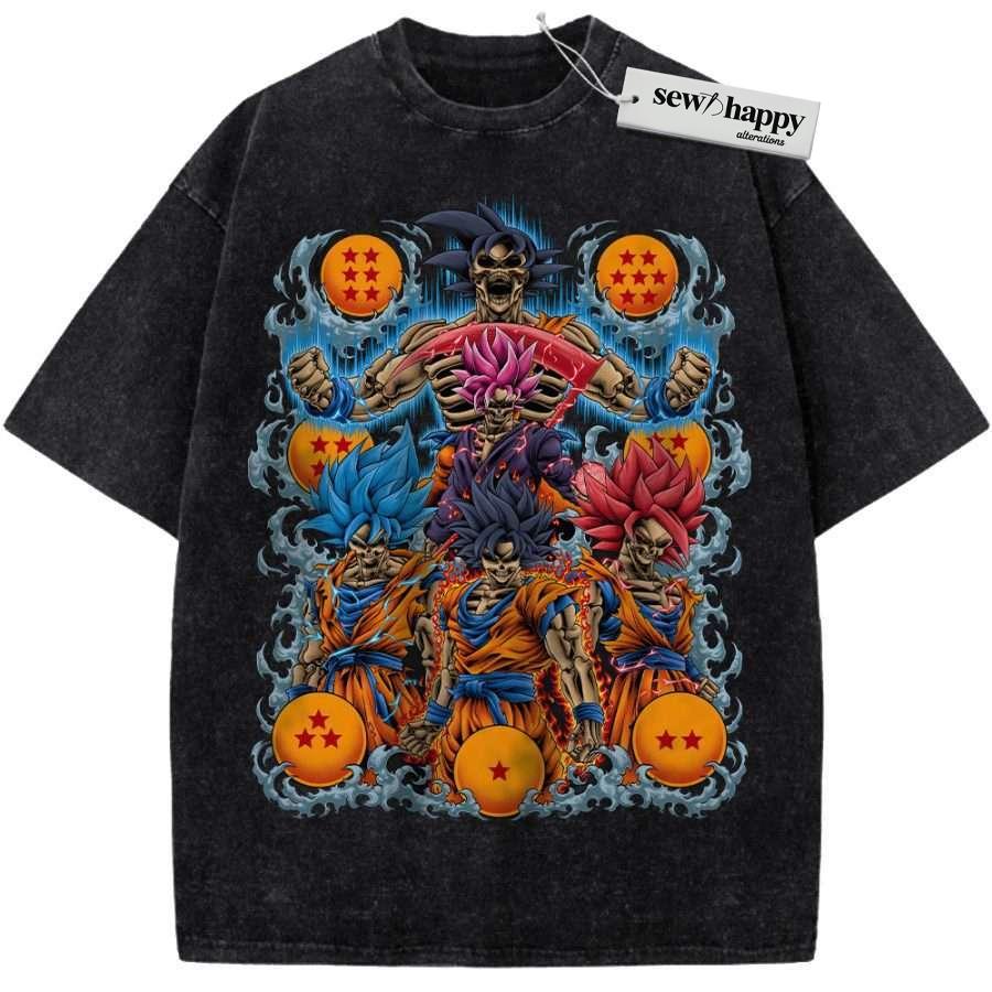 Wash Tee Skull Son Goku Shirt, Dragon Ball Shirt, DBZ Shirt, Anime Shirt, Vintage T-Shirt