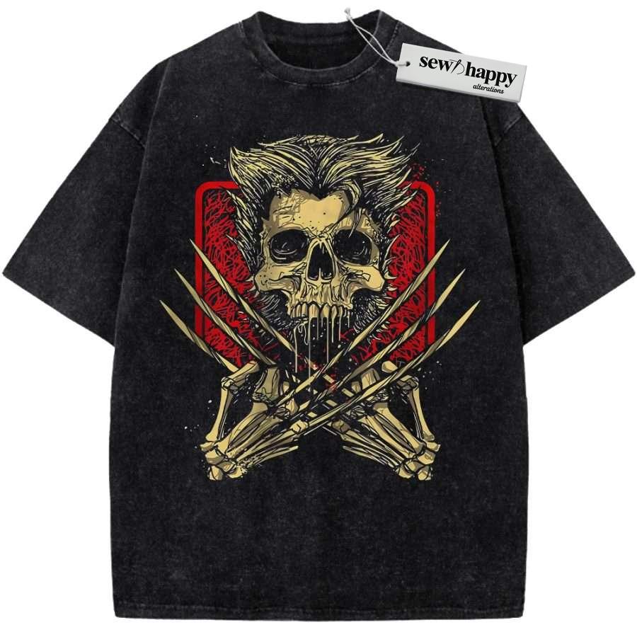 Wash Tee Skull Wolverine Shirt, Marvel Comics Shirt, Vintage T-Shirt