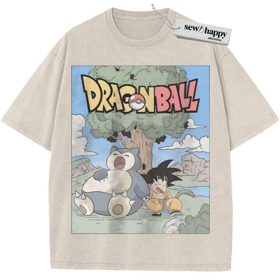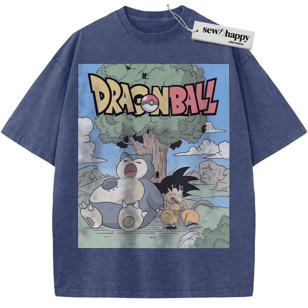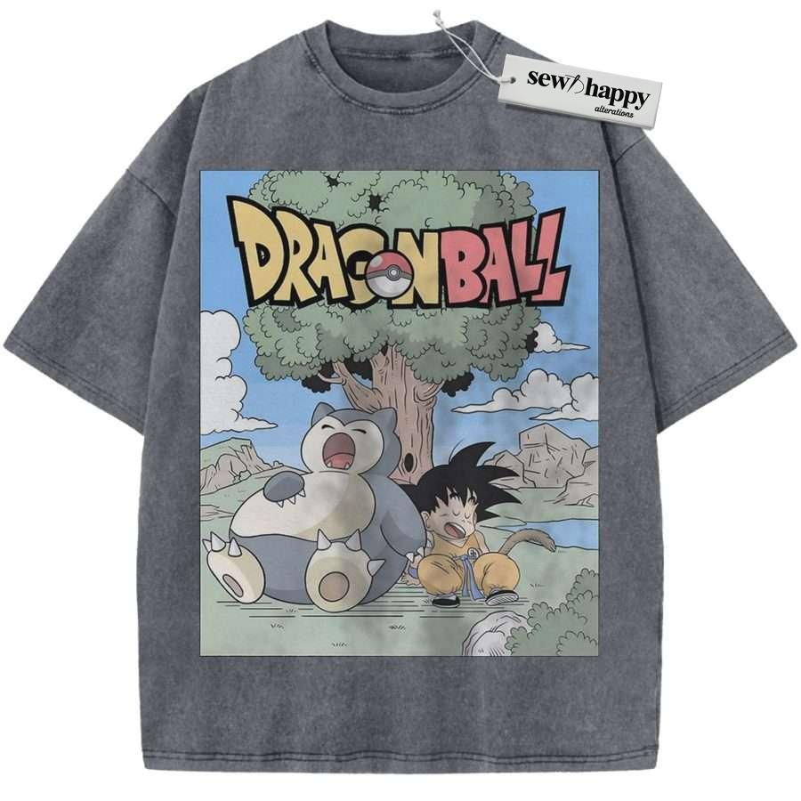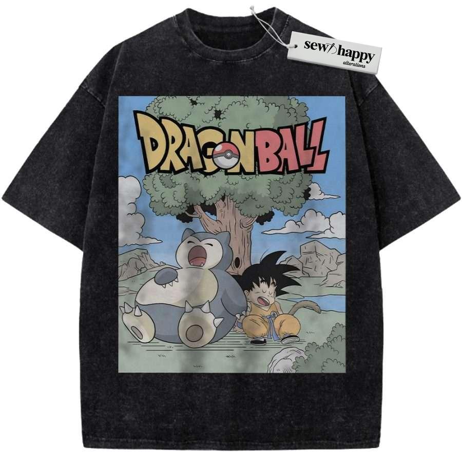 Wash Tee Snorlax Shirt, Son Goku Shirt, Dragon Ball Shirt, Pokemon shirt, Anime Shirt, Vintage T-Shirt
