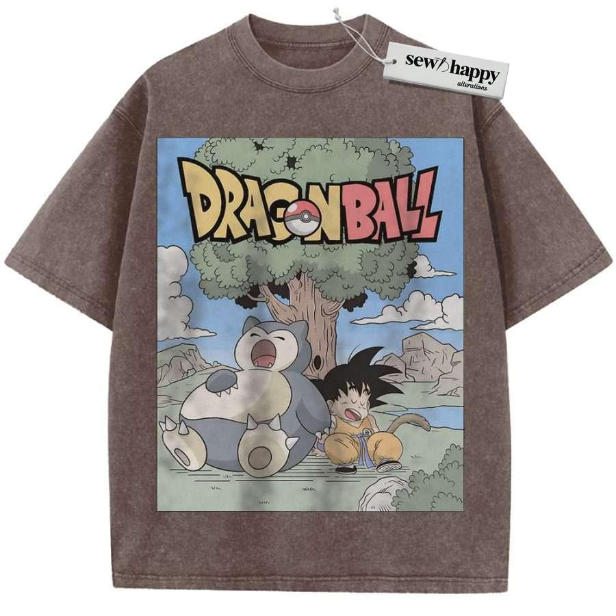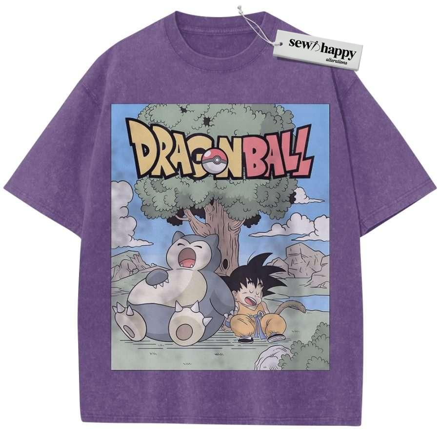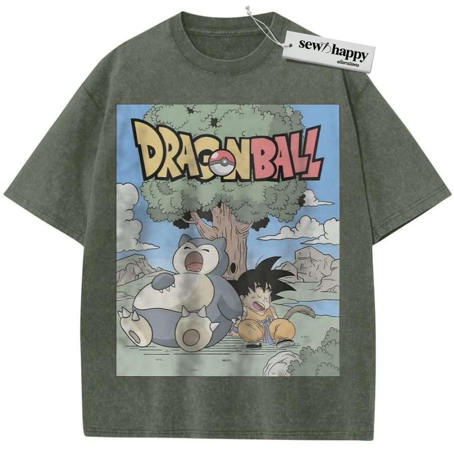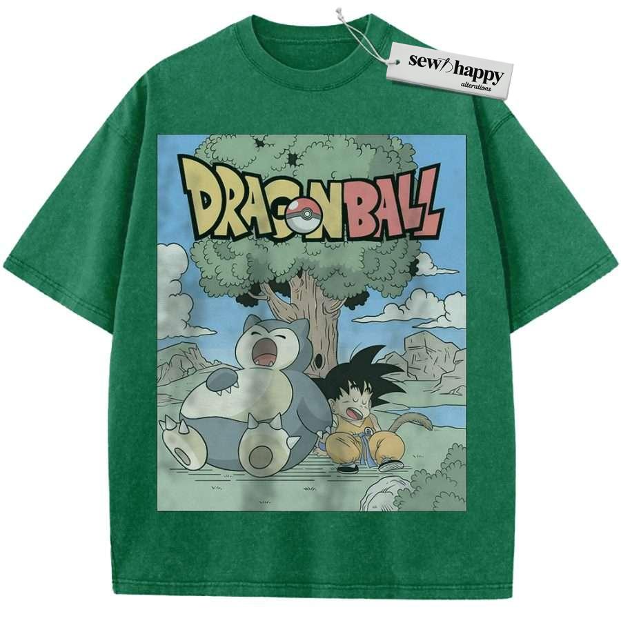 Wash Tee Snorlax Shirt, Son Goku Shirt, Dragon Ball Shirt, Pokemon shirt, Anime Shirt, Vintage T-Shirt