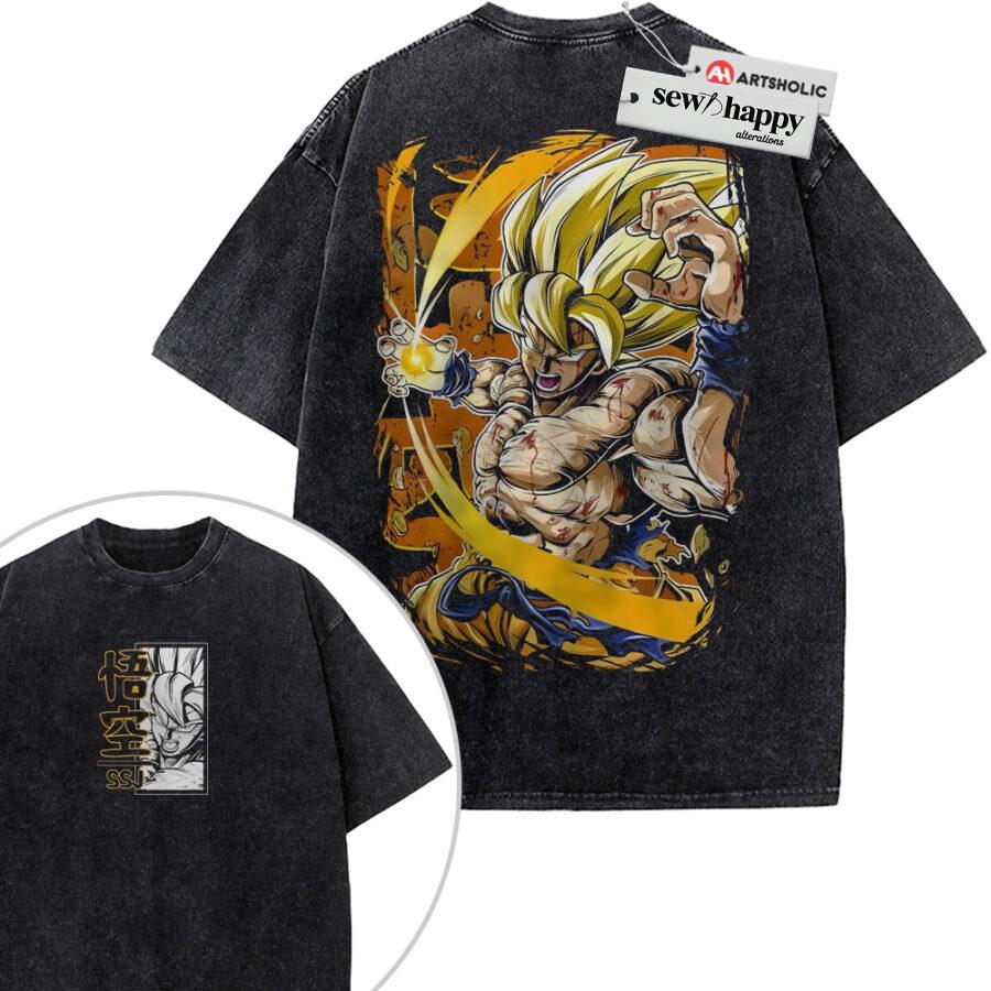 Wash Tee Son Goku Shirt, Dragon Ball Shirt, Anime Shirt, Vintage T-Shirt 2-Sided