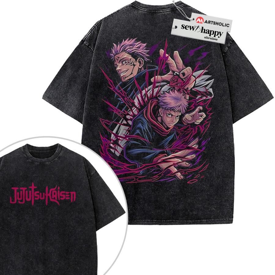 Wash Tee Sukuna Shirt, Yuji Itadori Shirt, Jujutsu Kaisen Shirt, Anime Shirt, Vintage Tee 2-Sided