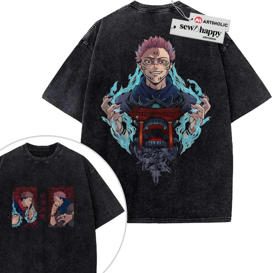 Wash Tee Sukuna x Yuji Itadori Shirt, Jujutsu Kaisen Shirt, Anime Shirt, Vintage T-Shirt 2-Sided