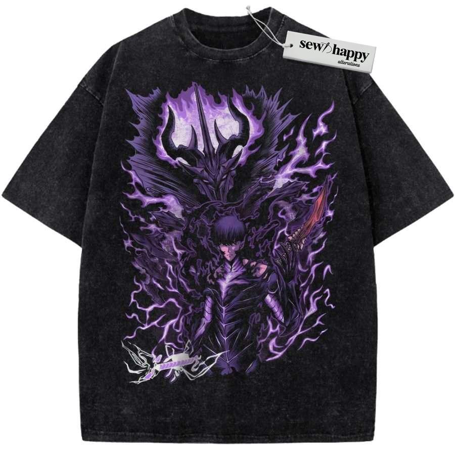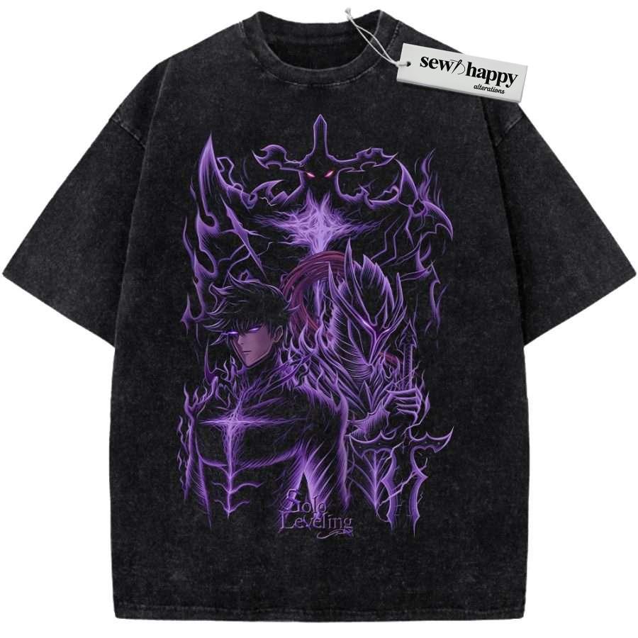 Wash Tee Sung Jinwoo Shirt, Solo Leveling Shirt, Anime Shirt, Vintage T-Shirt