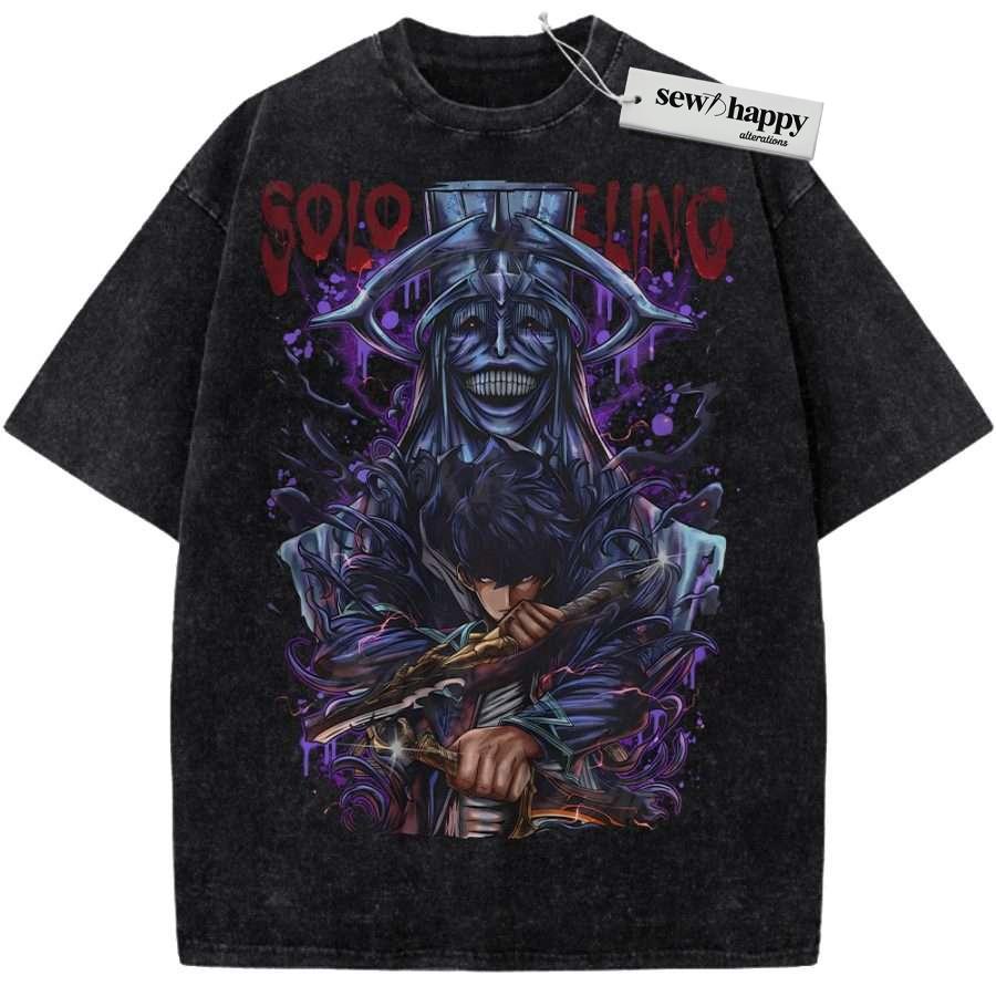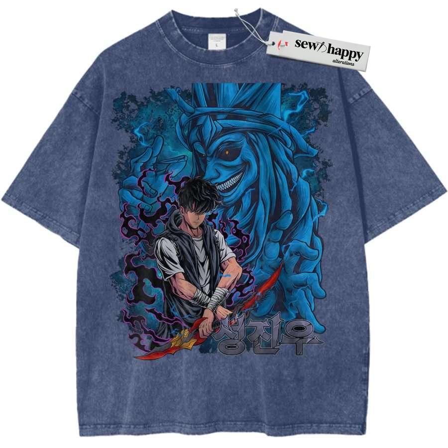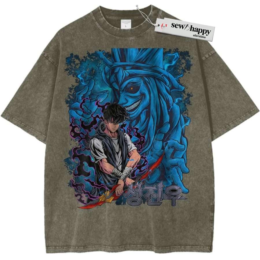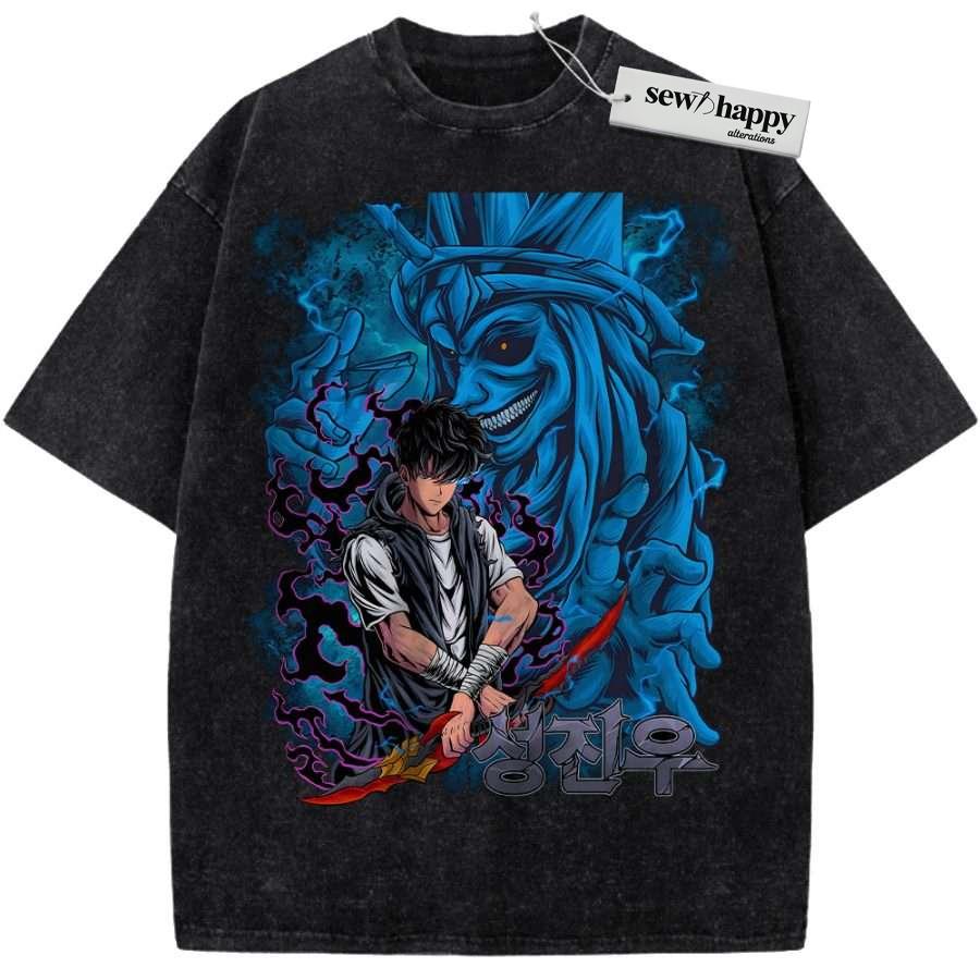 Wash Tee Sung Jinwoo Shirt, Statue of God Shirt, Solo Leveling Shirt, Anime Shirt, Vintage Tee