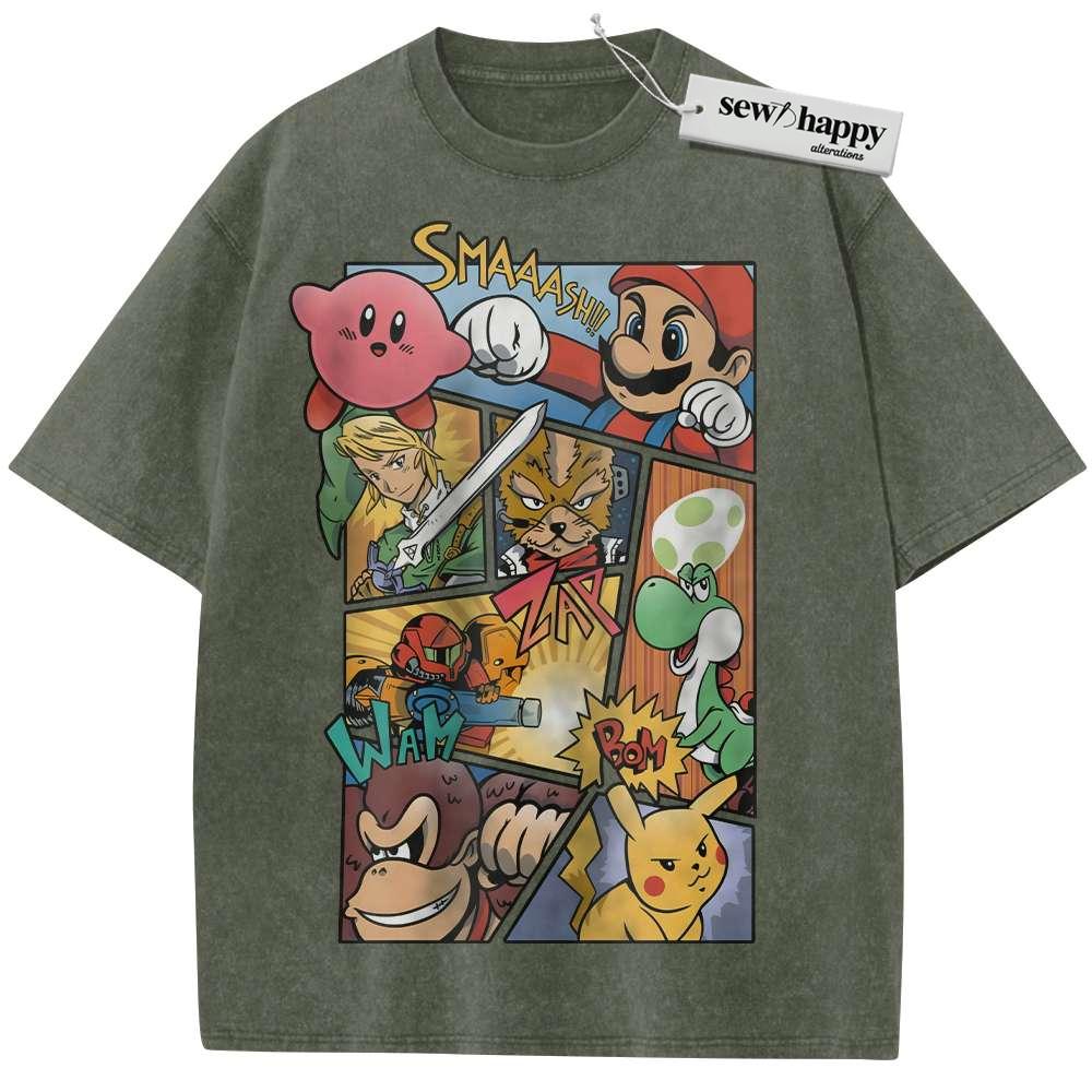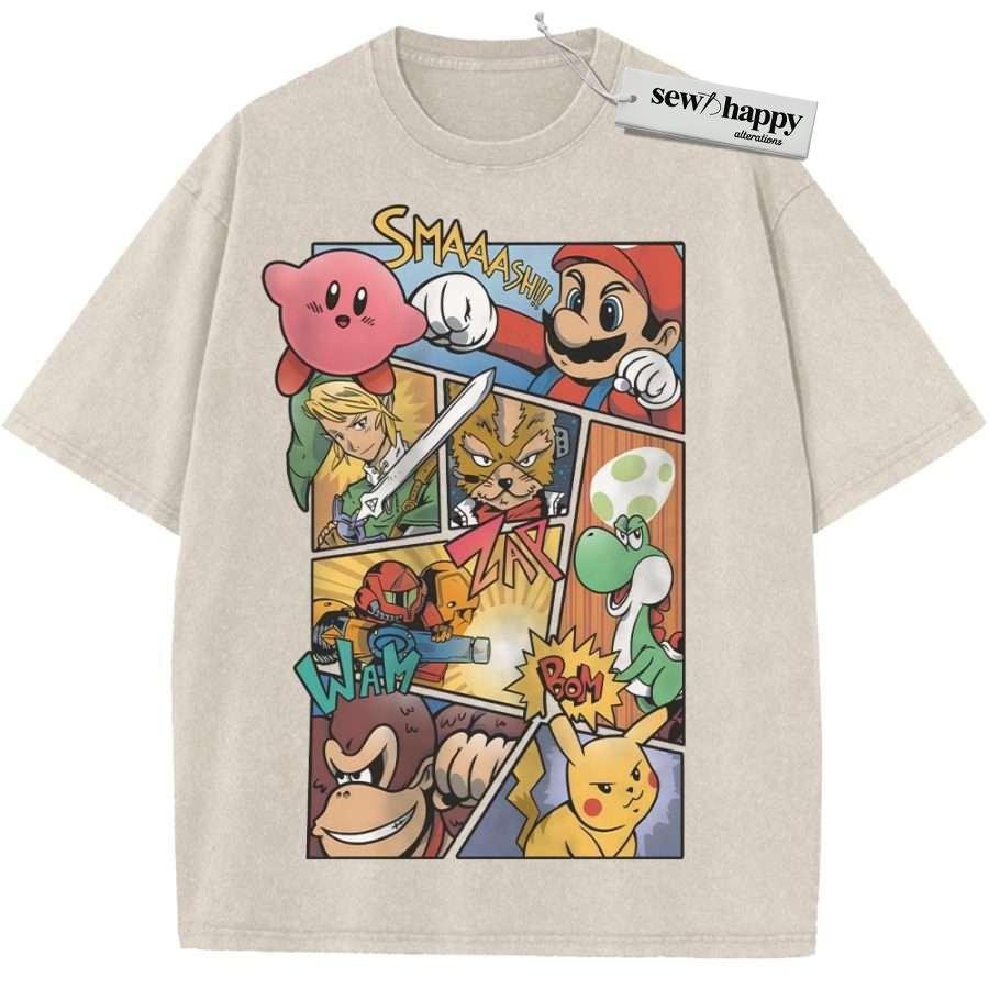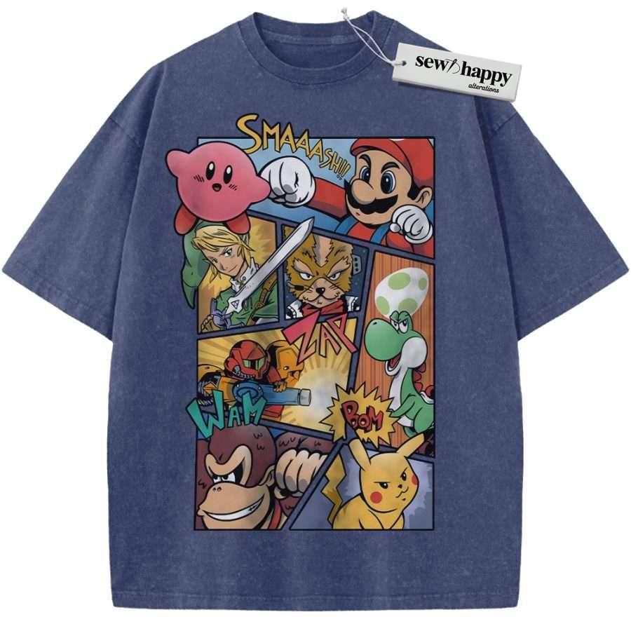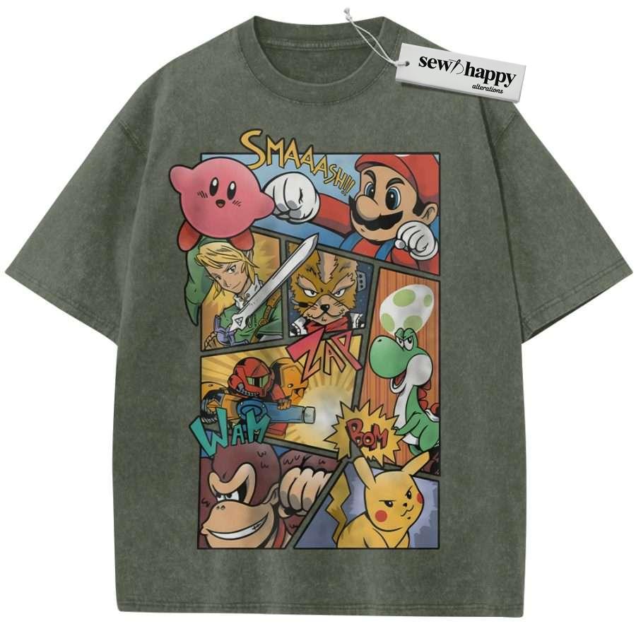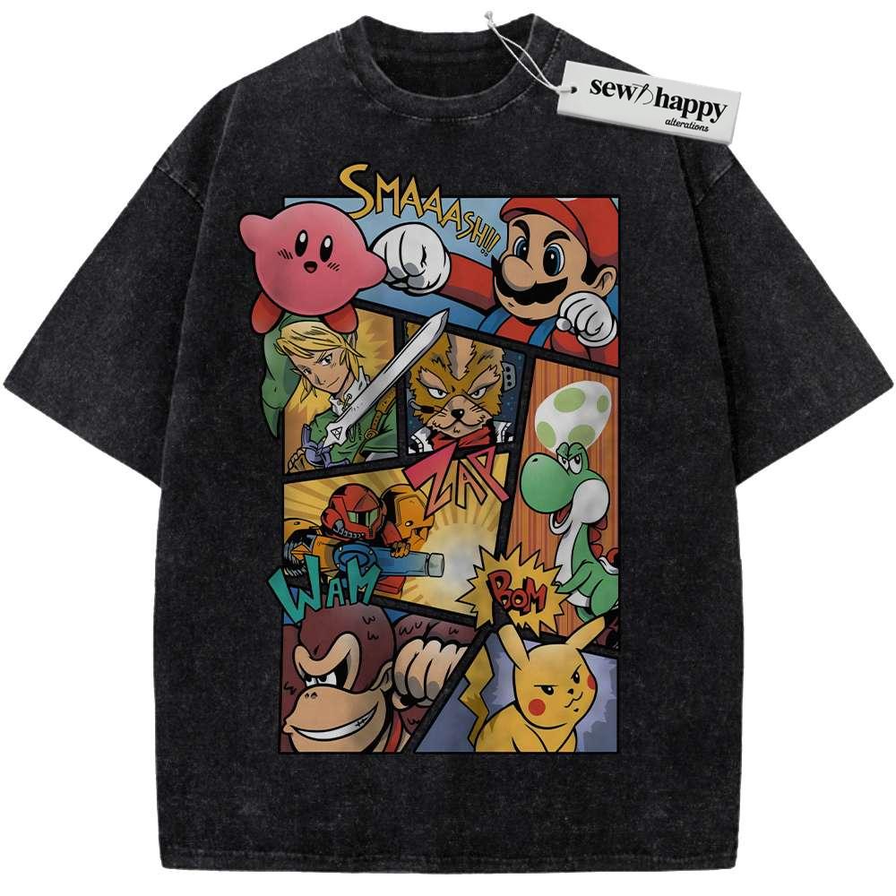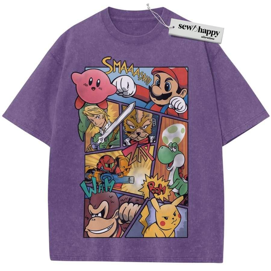 Wash Tee Super Smash Bros Shirt, Nintendo Shirt, Game Shirt, Vintage Tee