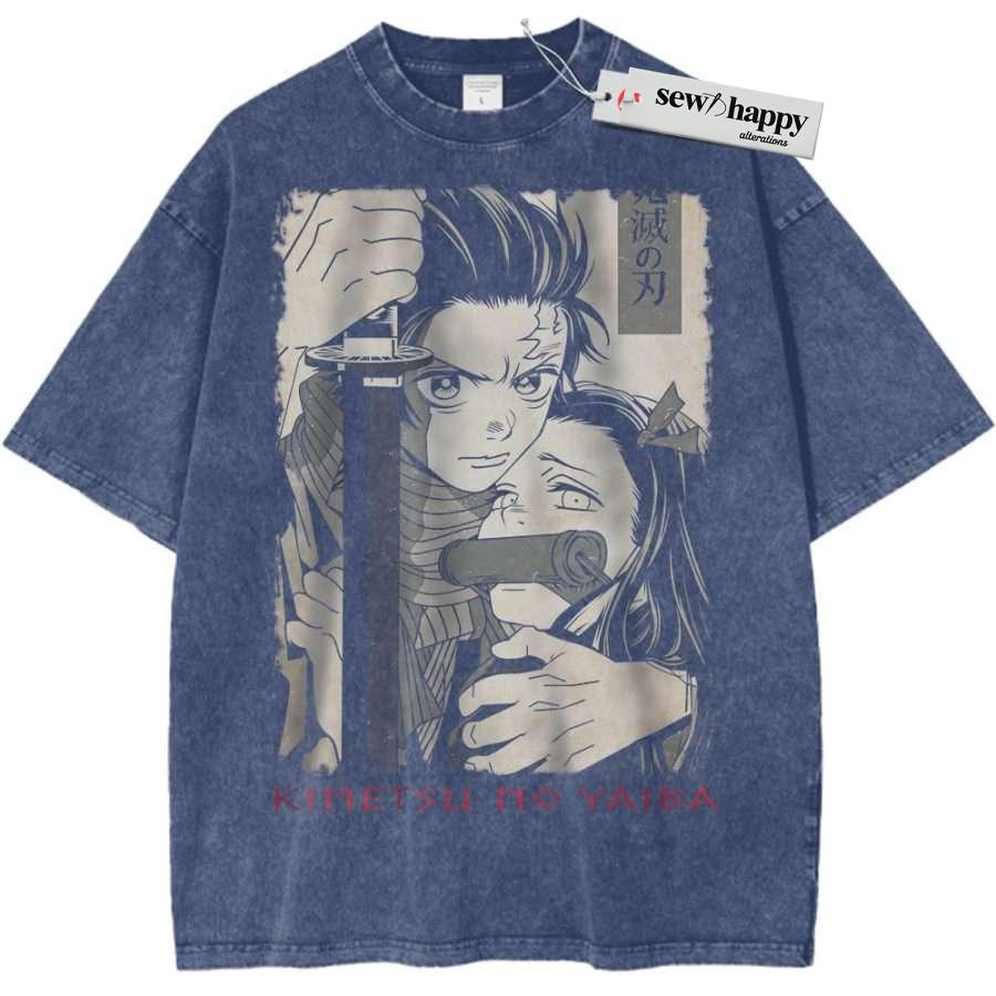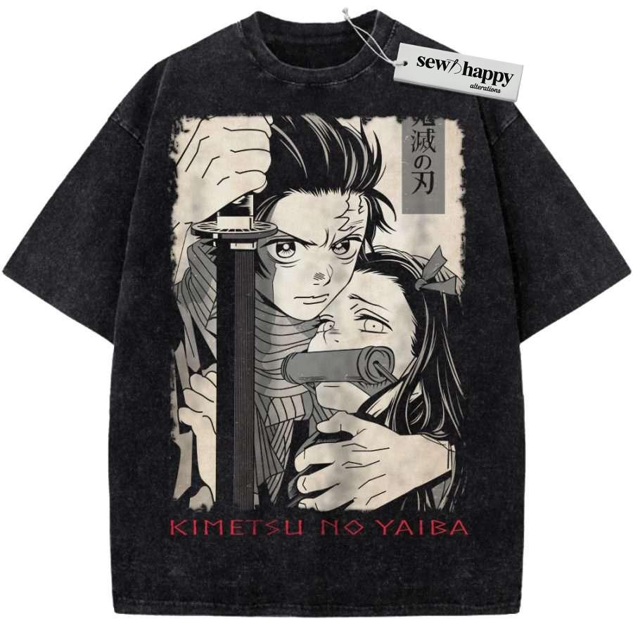 Wash Tee Tanjiro and Nezuko Shirt, Demon Slayer Shirt, Anime Shirt, Vintage Tee