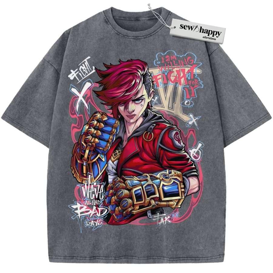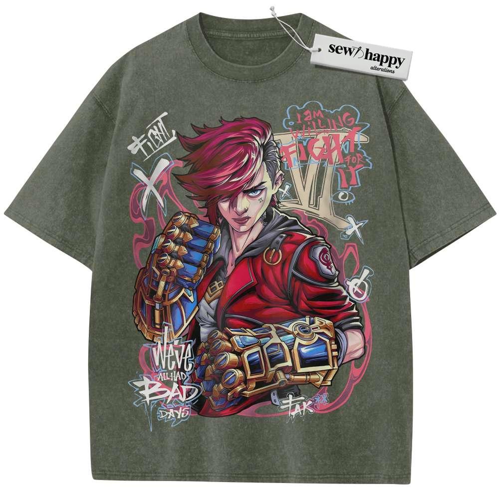 Wash Tee Vi – Arcane Shirt, League of Legends Shirt, Game Shirt, Vintage T-Shirt