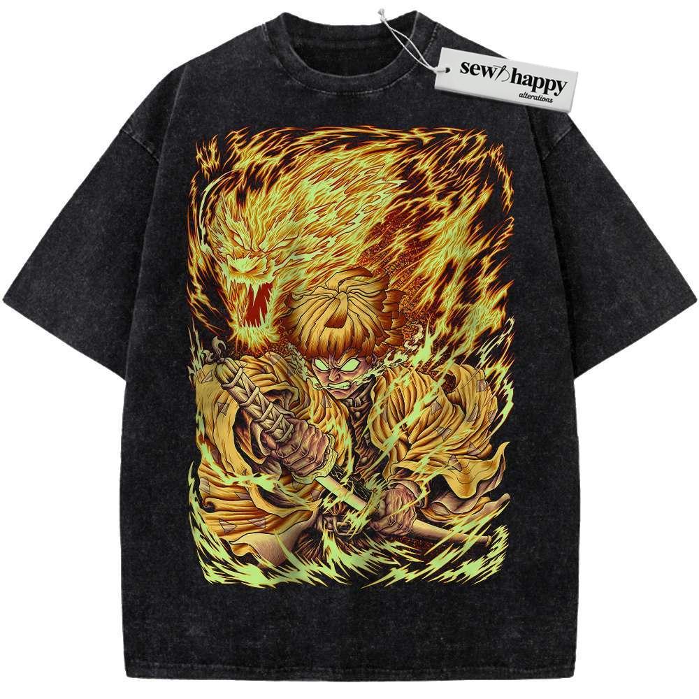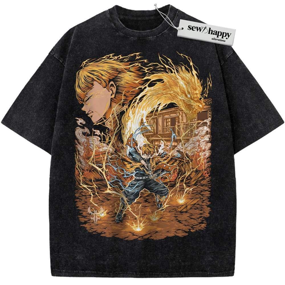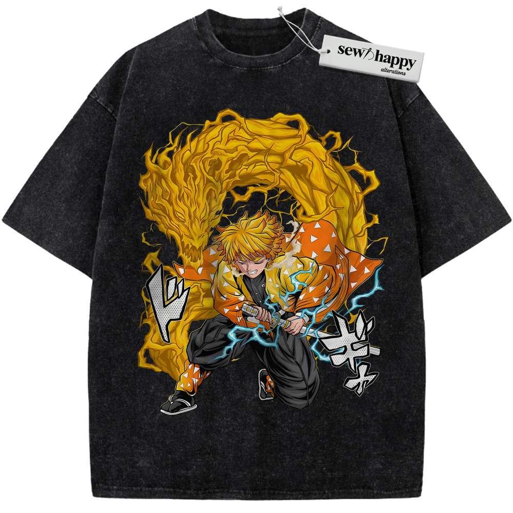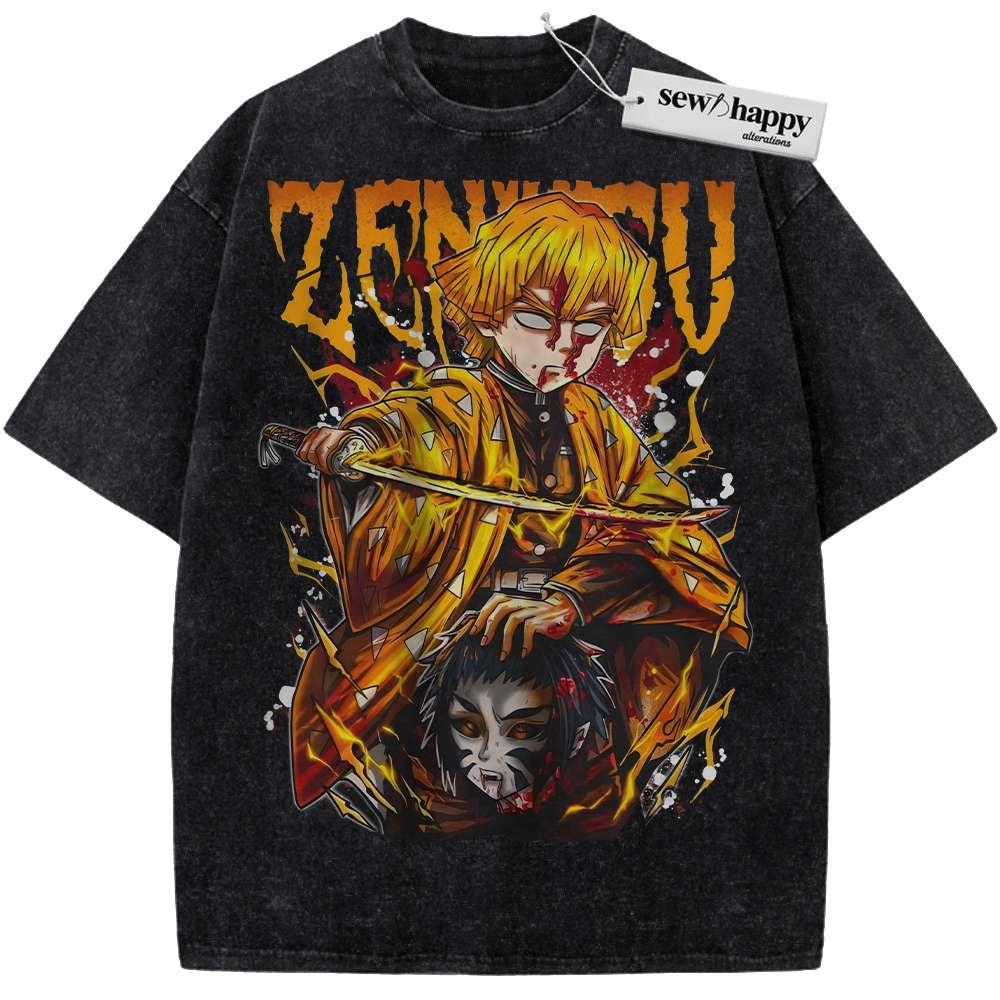 Wash Tee Zenitsu Agatsuma Shirt, Demon Slayer Shirt, Anime Shirt, Vintage T-Shirt
